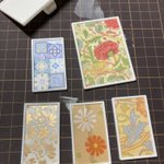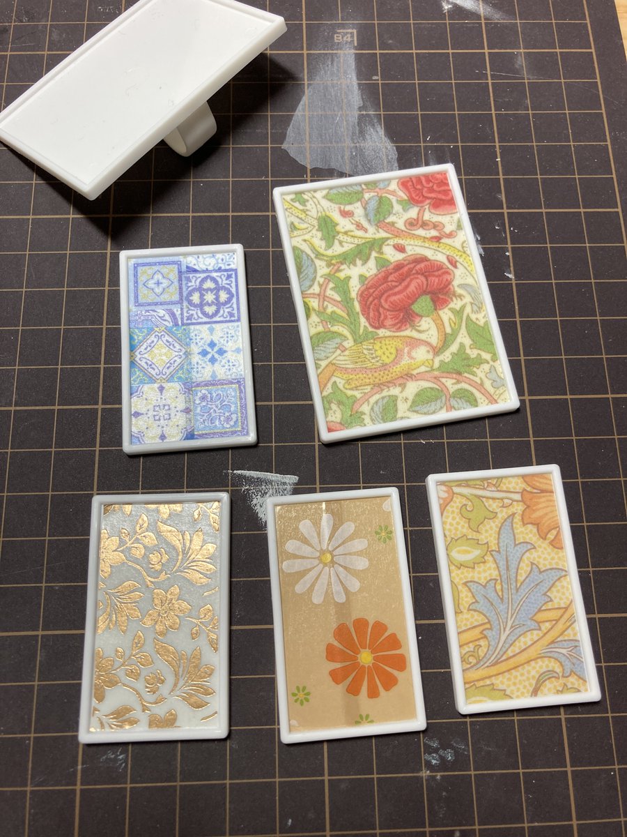 セリアのこのデザインペーパー、いろんな柄がすこしずつ入ってて文字もあるからミニチュア本の表紙に便利。やわらかめな厚紙に貼ってカラーボードに巻くだけ。📔📙📗 #シルバニアファミリー #ハンドメイド #セリア