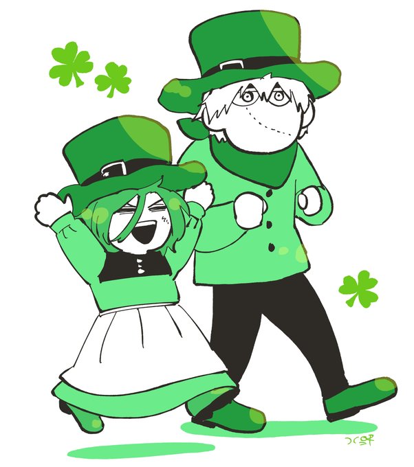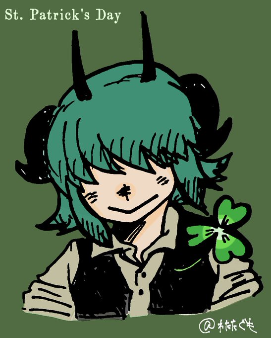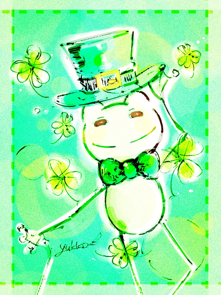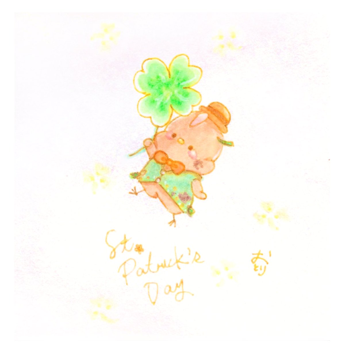 🍀を草をかき分け見つけたらぐにーる✨うーちゃんとこまちにあげたら喜ぶかな! #セントパトリックスデー #ゆるいイラスト #illustration #アナログイラスト #イラスト好きな人と繋がりたい