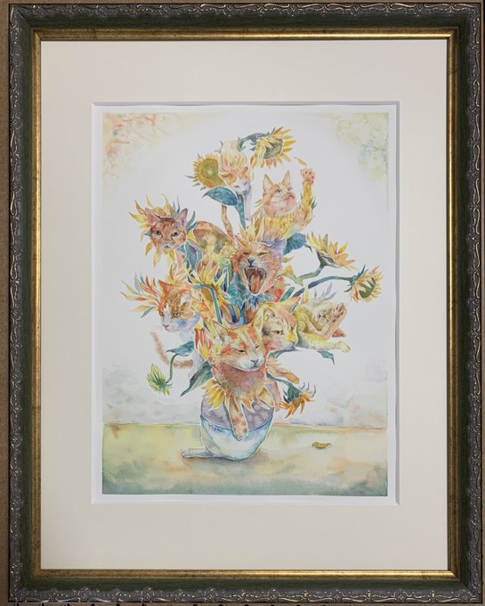 6/7-19名古屋セントラルギャラリーにて開催される「リメイガエキシビジョン」に出展します。出展番号② 「咲き乱れる猫」 #watercolor #drawing #art #透明水彩 #水彩画 #イラスト #絵 #ねこ #ひまわり #リメイガエキシビジョン #名古屋 #セントラルギャラリー 何とか間に合った😅
