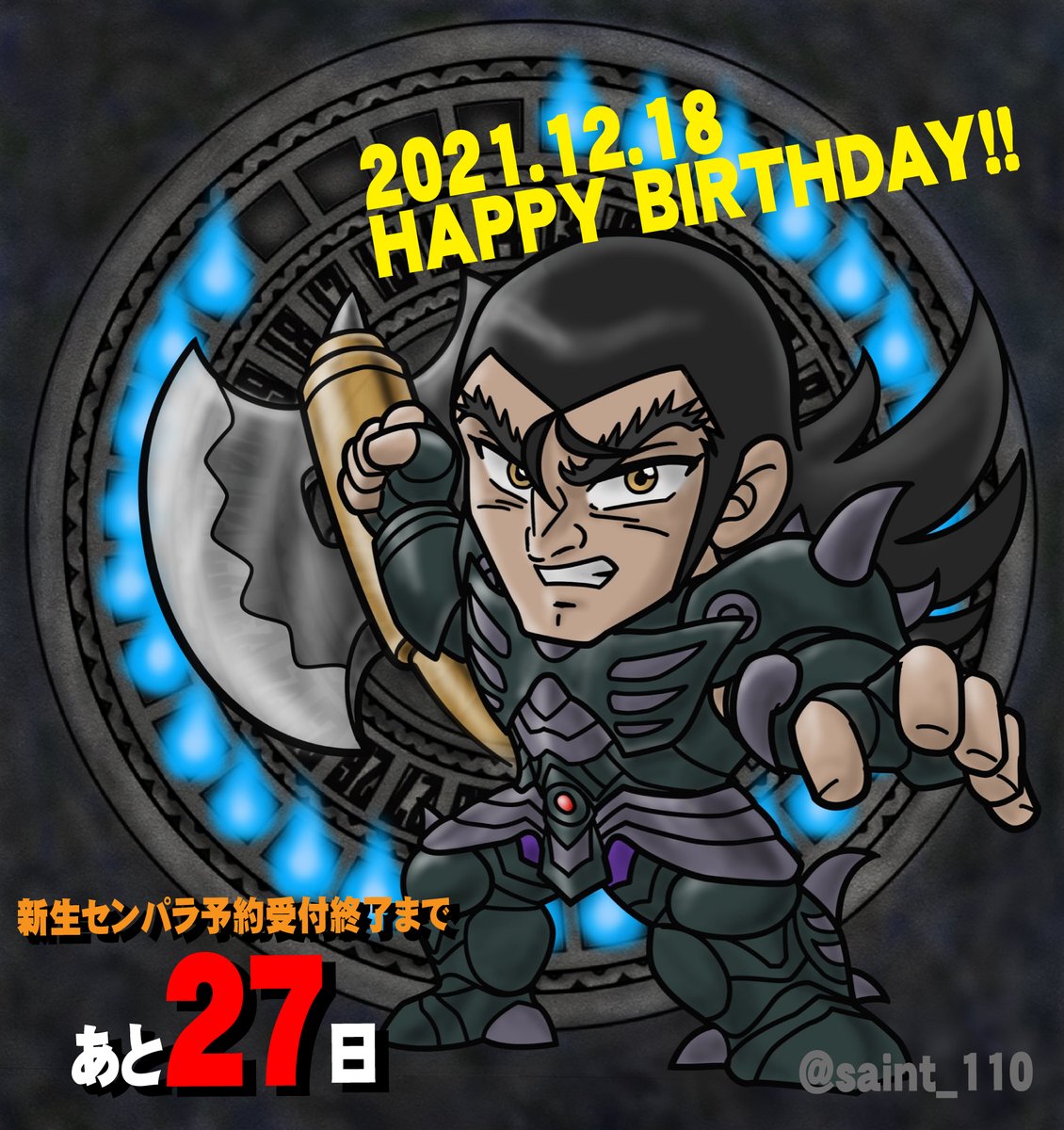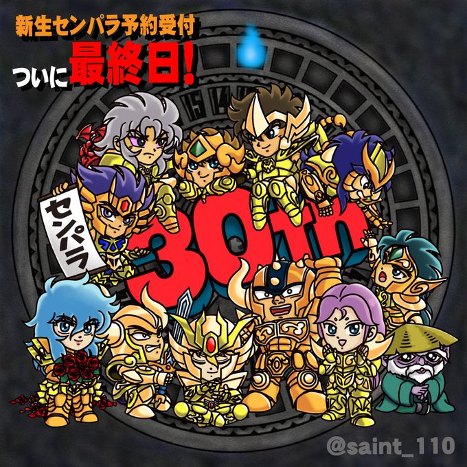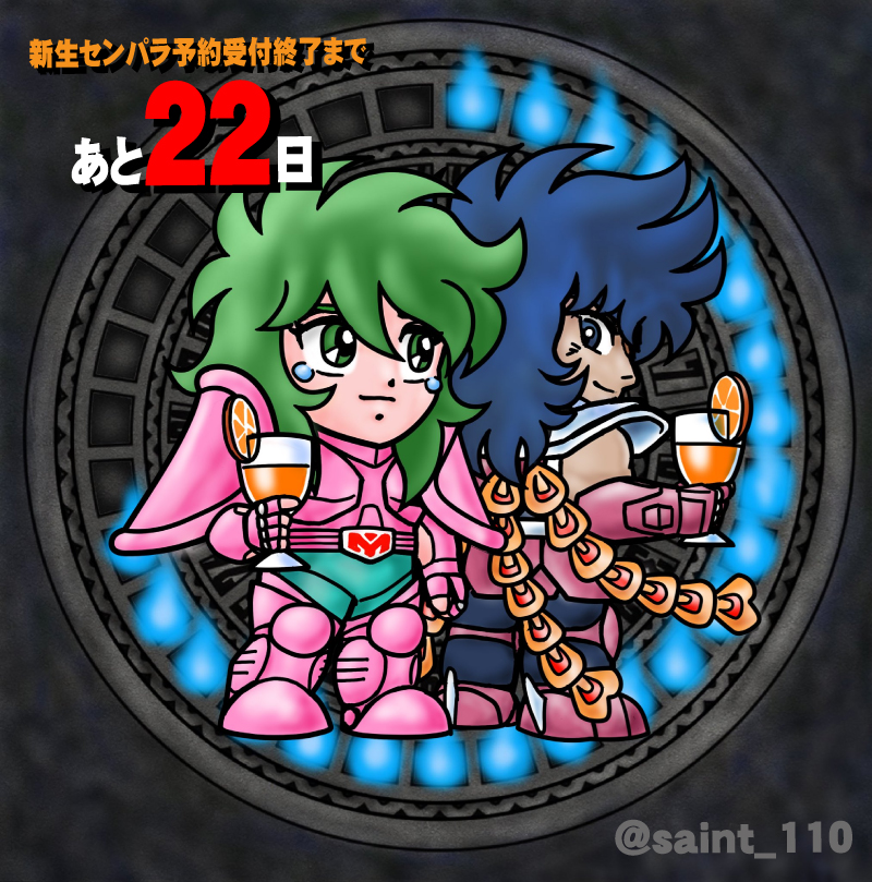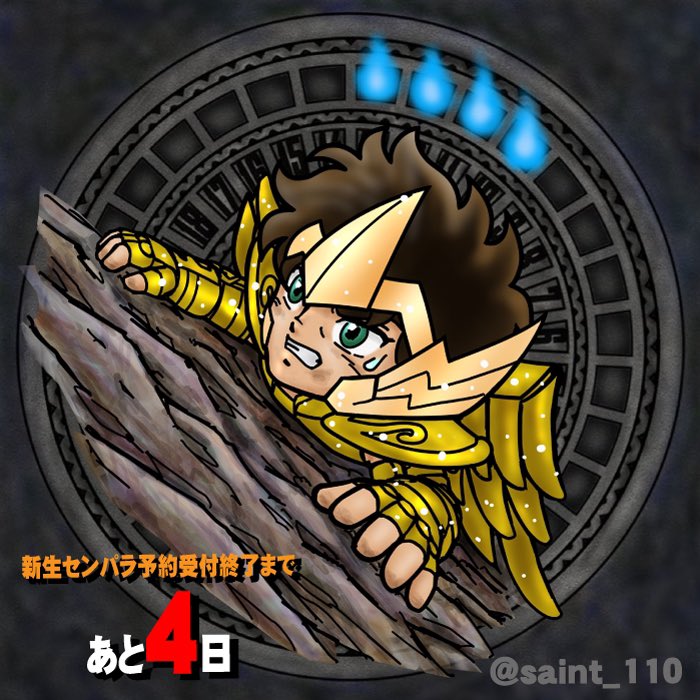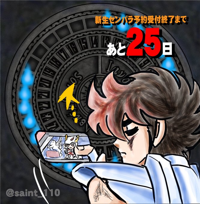110さん(@saint_110)のセンパラ復活記念企画に参加させていただきまーす! 『新生セイントパラダイス ~よみがえれ! 英雄伝説~』 ご予約は1月13日(木)まで!! 火時計絵参加者募集中とのこと☆110さんにお声掛けを‼ #センパラ火時計 #セイントパラダイス #カウントダウンイラスト参加者募集中