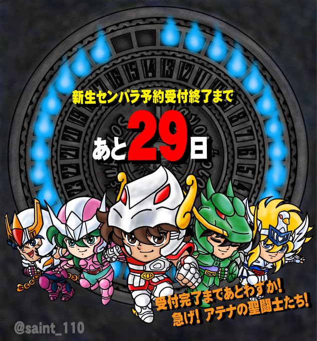 予約締切まであと1か月、センパラ火時計が登場! 受付終了までの日数をカウントダウン。 新生セイントパラダイスはプレミアムバンダイにて1月13日まで予約受付中! #センパラ火時計 #セイントパラダイス #カウントダウンイラスト参加者募集中