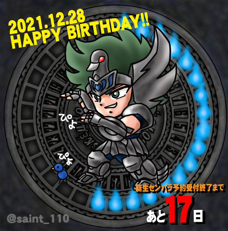 暗黒スワンさん、おめでとうございます! となると、同じ白鳥でも暗黒スワンはもともと水瓶座の黄金聖衣をまとう資格はないのか。。。 #暗黒スワン生誕祭2021 #センパラ火時計 #セイントパラダイス