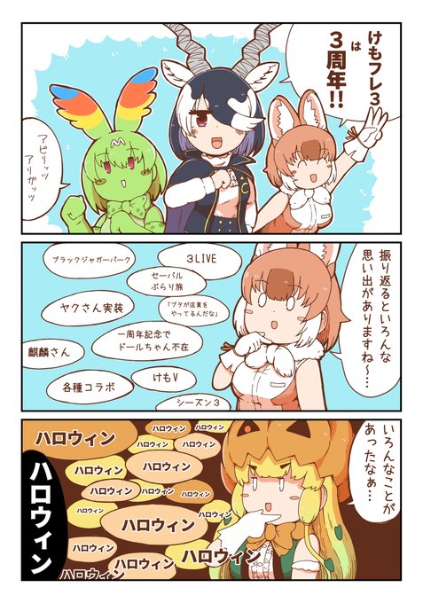 三周年 #けものフレンズ #けものフレンズ3 #ジャック・オー・ランタン(けものフレンズ) #ドール(けものフレンズ) #セーバル(けものフレンズ) #ブラックバック(けものフレンズ) pixiv.net/artworks/10211…