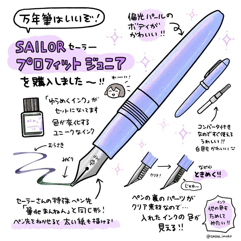 【あと25日!】 #インクイラスト合同誌 「#インク・ミュージアム」の発刊カウントダウン。 本日は、国産万年筆を日本で初めて製造したことで有名な「#セーラー万年筆」(@sailor_1911 )から4色をご紹介します! 紙や時間の経過で色が変わる「ゆらめくインク」は合同誌内でも大人気でした! #インク沼