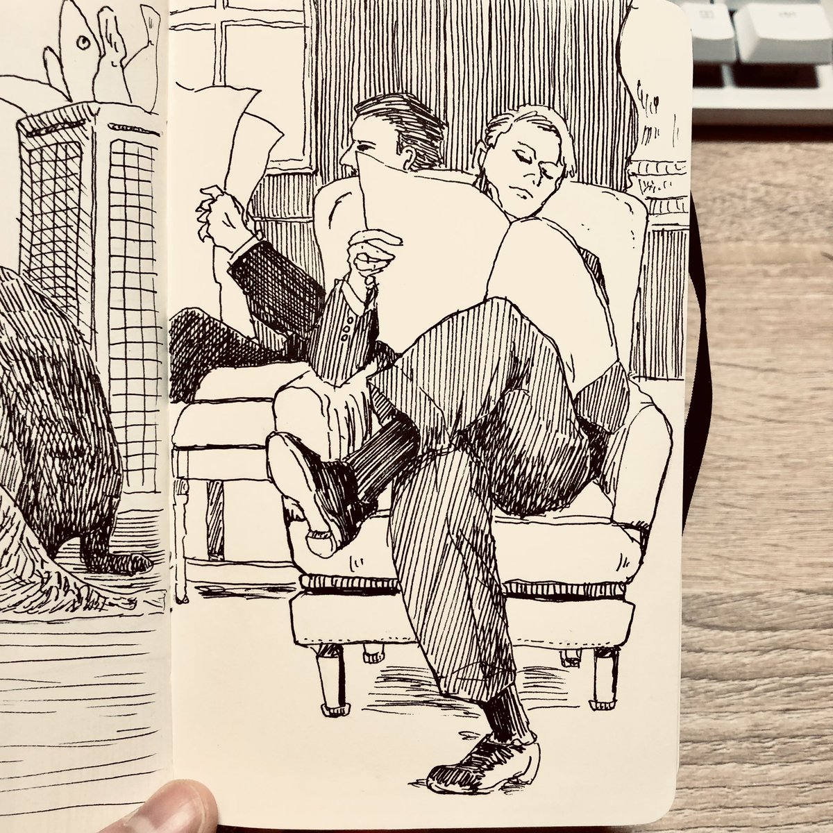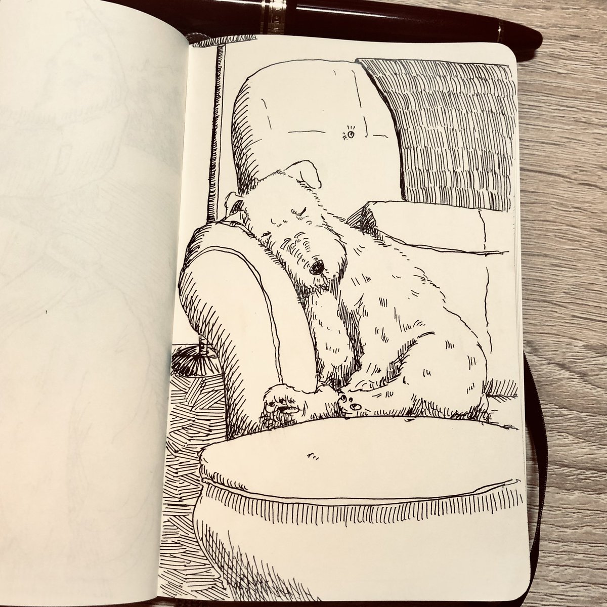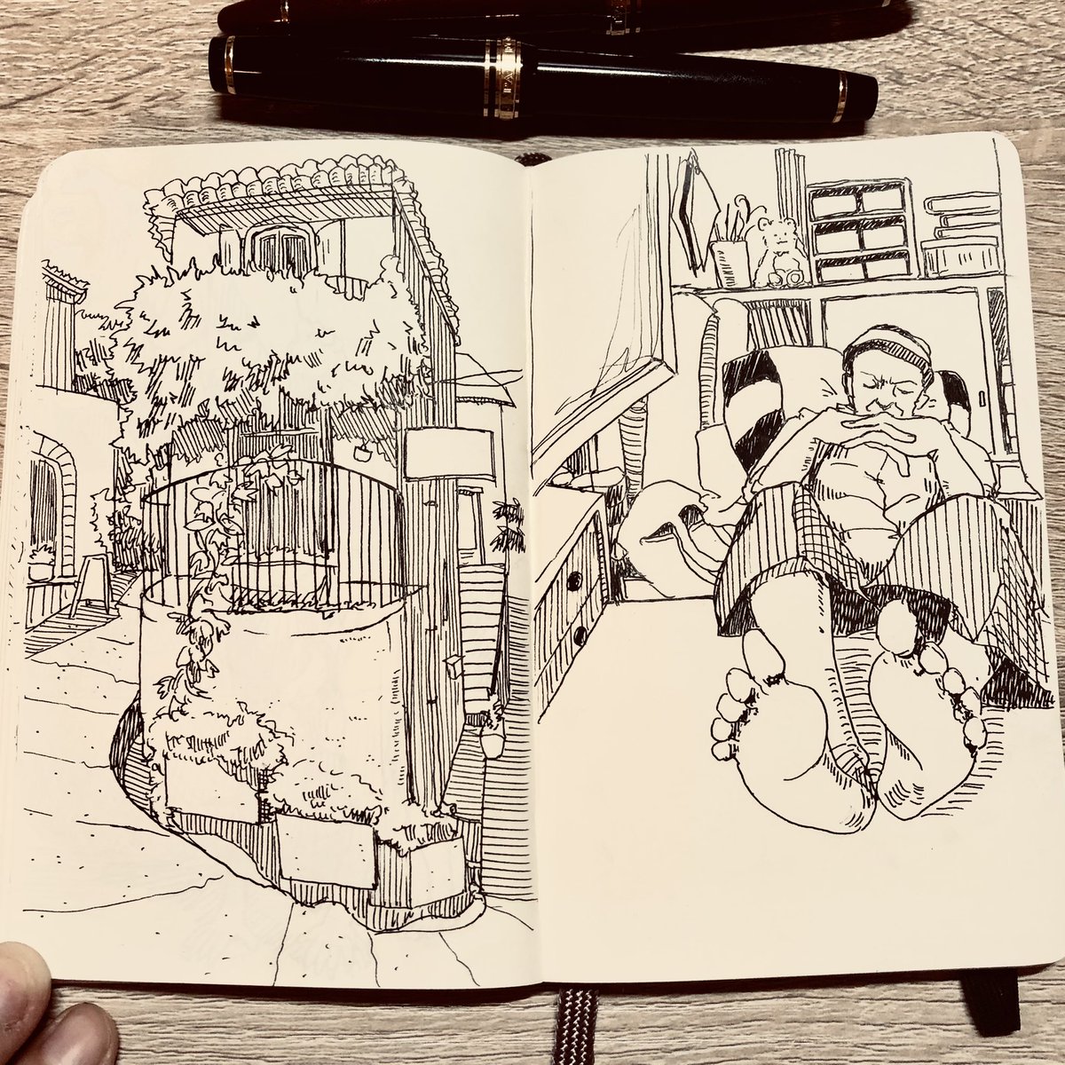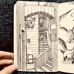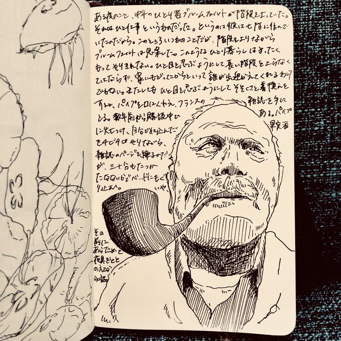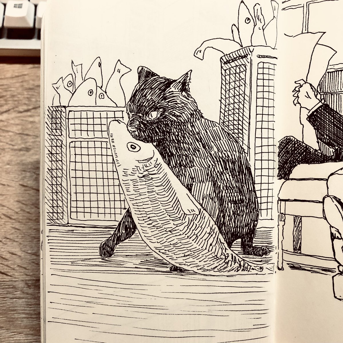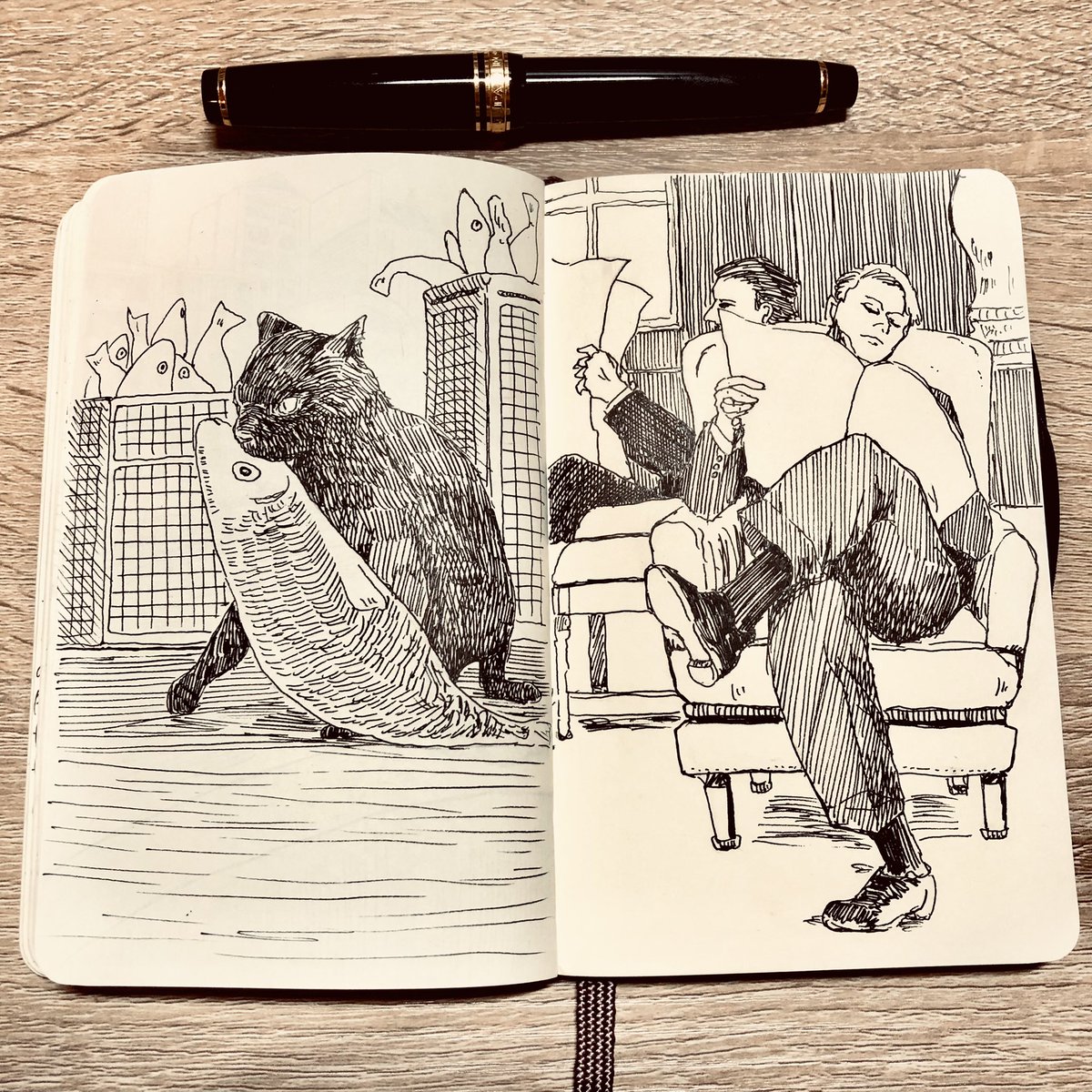 久々に文字入れた絵。 新しい万年筆のおかげで、線画の幅が広がった。 #万年筆 #セーラー万年筆 #モレスキン #moleskine #絵描きさんと繋がりたい #illustraion #イラスト #ペン画 #手帳 #アナログ画