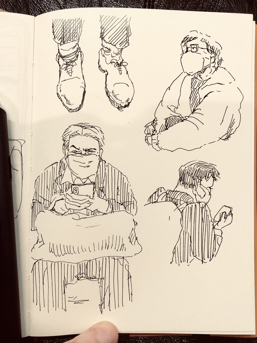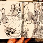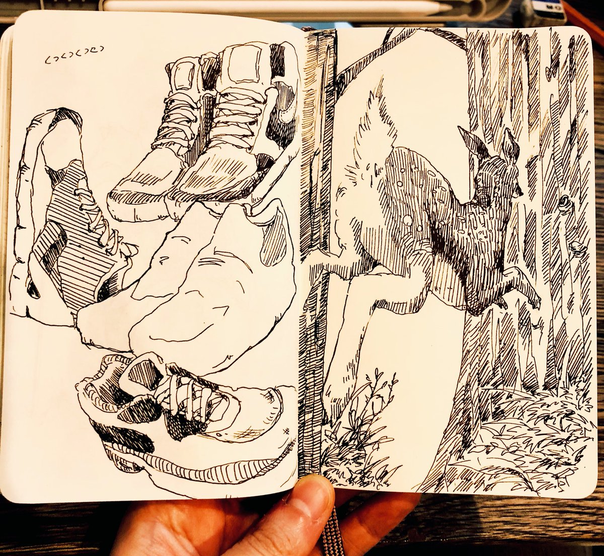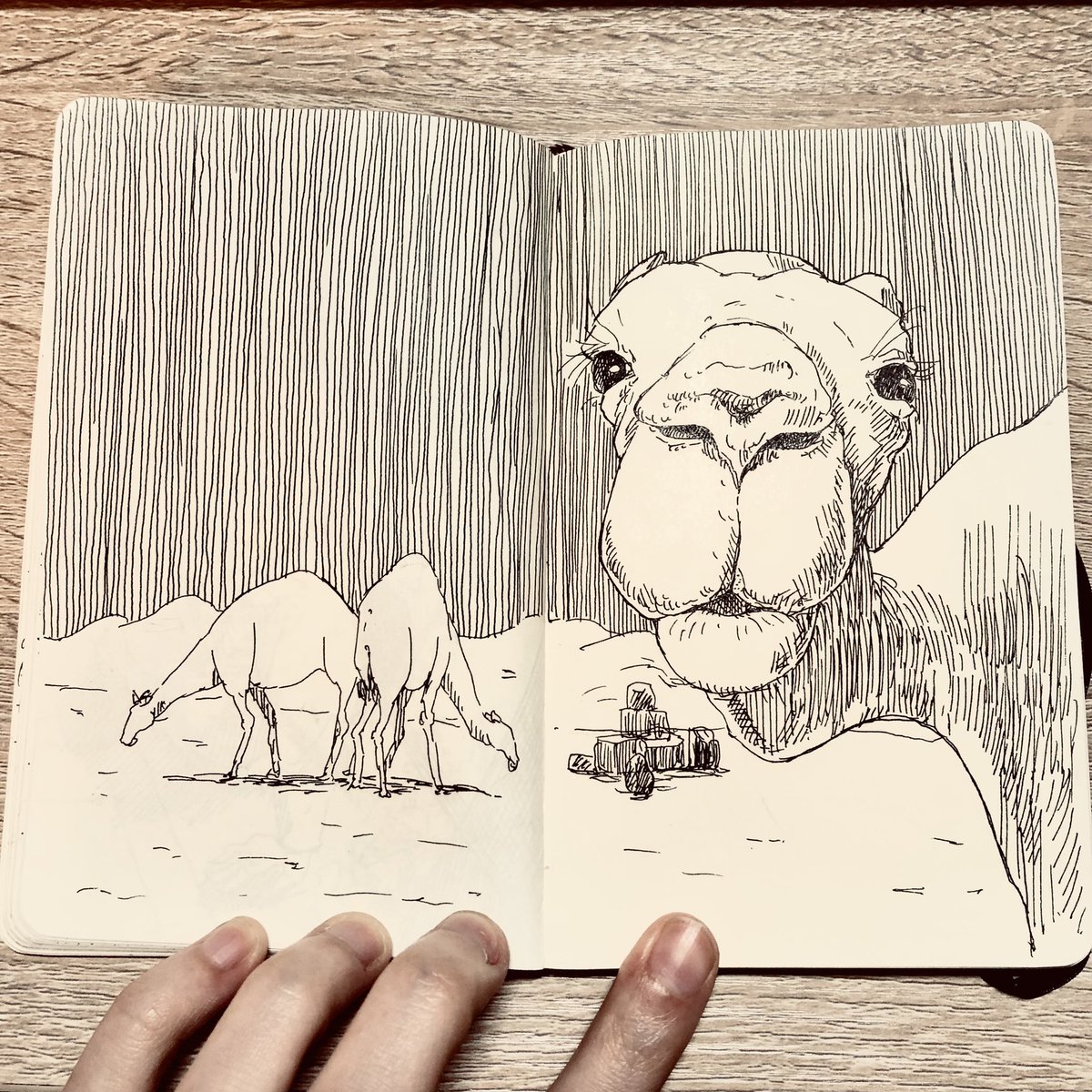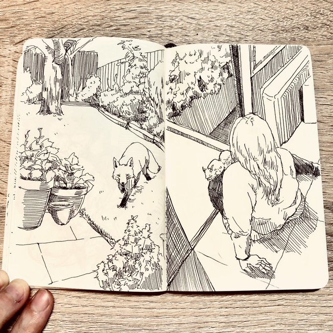 🦊🐿👩🐪 主観意識して描いてみた。 B級ホラー映画観ながら描いたとは思えないほのぼのさよ。 #万年筆 #セーラー万年筆 #モレスキン #moleskine #絵描きさんと繋がりたい #illustraion #イラスト #ペン画 #手帳 #アナログ画