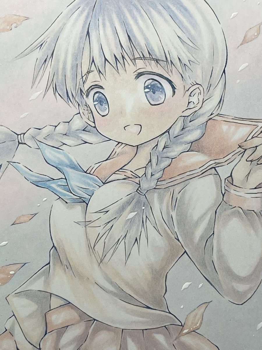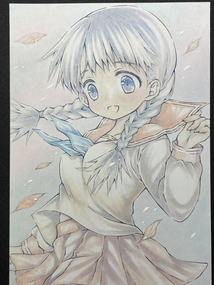 #オリジナル手描きイラスト #セーラー服イラスト #絵描きさんと繋がりたい #イラスト練習中 手の練習がしたいので イラストになるべく手を入れる 事にしました🙌 因みに、最近の絵の事情を 知らないので 1日多分情報に費やす時間は 2時間ほどかもしれません🤔 だから頭痛がするのか❓ 肩こりか⁉️