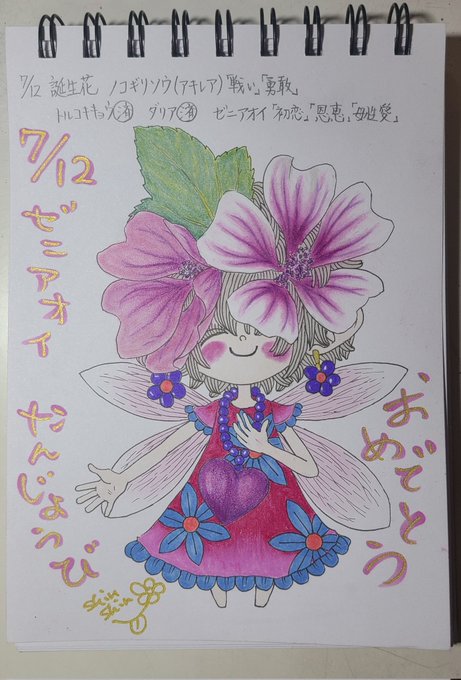 7月12日生まれの皆さん誕生日おめでとうございます😁😁✨ #毎日誰かの誕生日 #誕生日 #花の妖精シリーズ #誕生花 #花言葉 #毎日投稿 #イラスト #誕生日おめでとう #HappyBirthday #ゼニアオイ #花のある暮らし #花 #illustration #handdrawing #fyp #オリジナルキャラクター