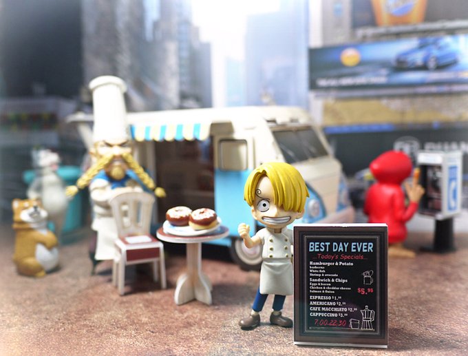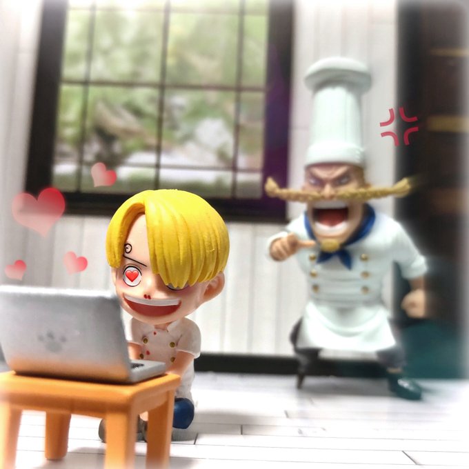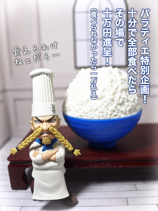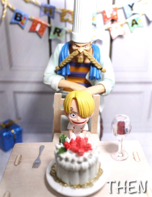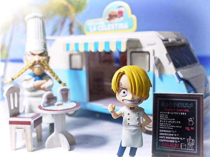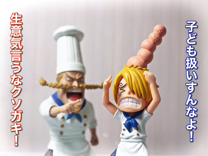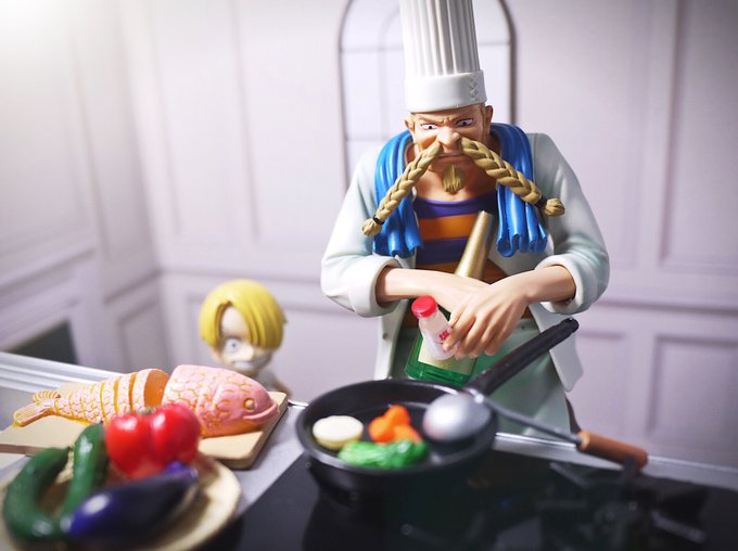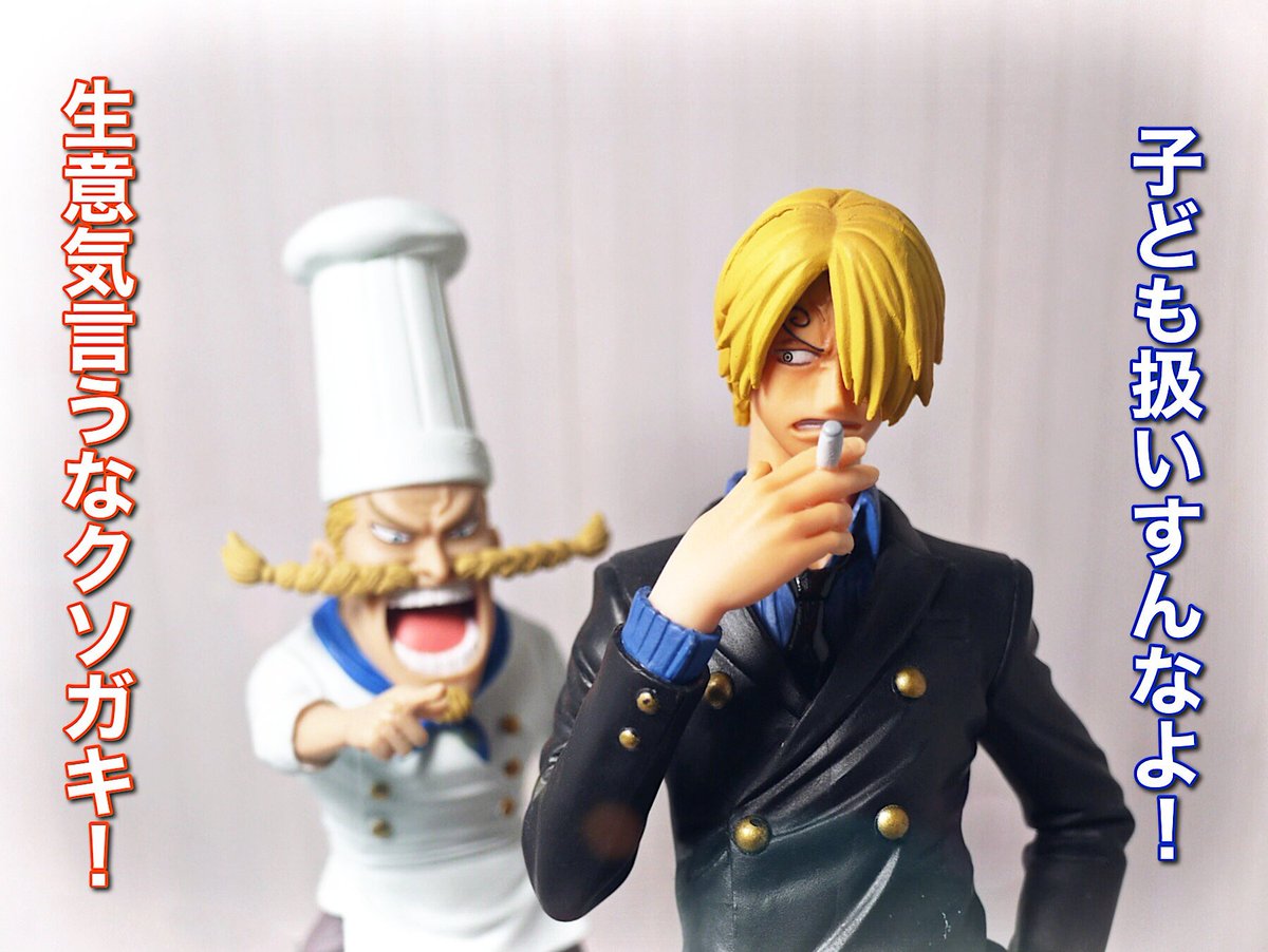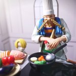 #夜のフィギュア撮影会 7/18 お題『変化』 変化どころの騒ぎじゃない。 #onepiece #サンジ #ゼフ #パティ #WCF #ガチャガチャ #カプセルトイ #箱買いペットボトル #システムキッチンマスコット