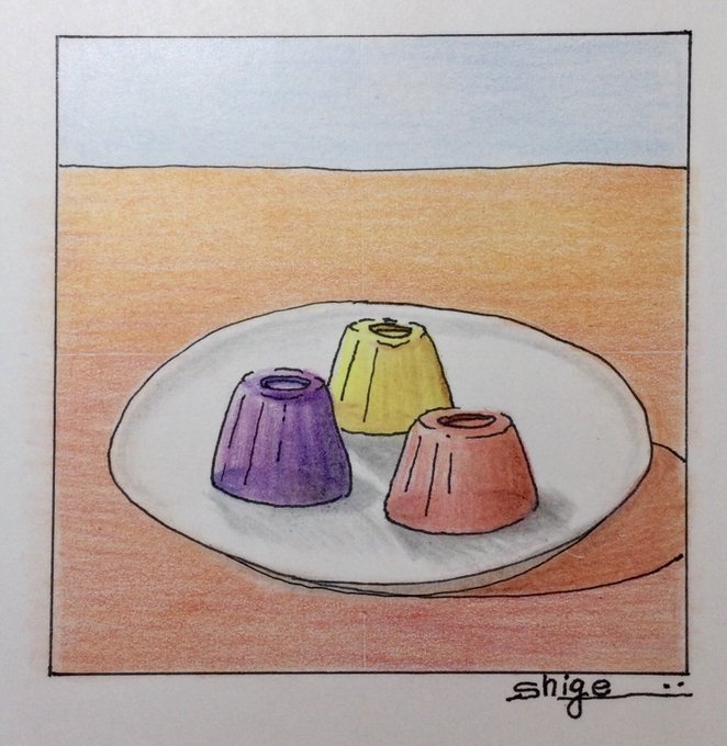 〜おやつの時間 ゼリー〜 今朝も色鉛筆を使って、ひと口サイズのゼリーを描いてみました。さあ、待ちに待ったおやつの時間。パイナップル味、葡萄味、苺味が勢揃い。何から食べようかな。 #色鉛筆画 #静物画 #おやつ #ゼリー #絵を描いている人と繋がりたい #絵が好きな人と繋がりたい