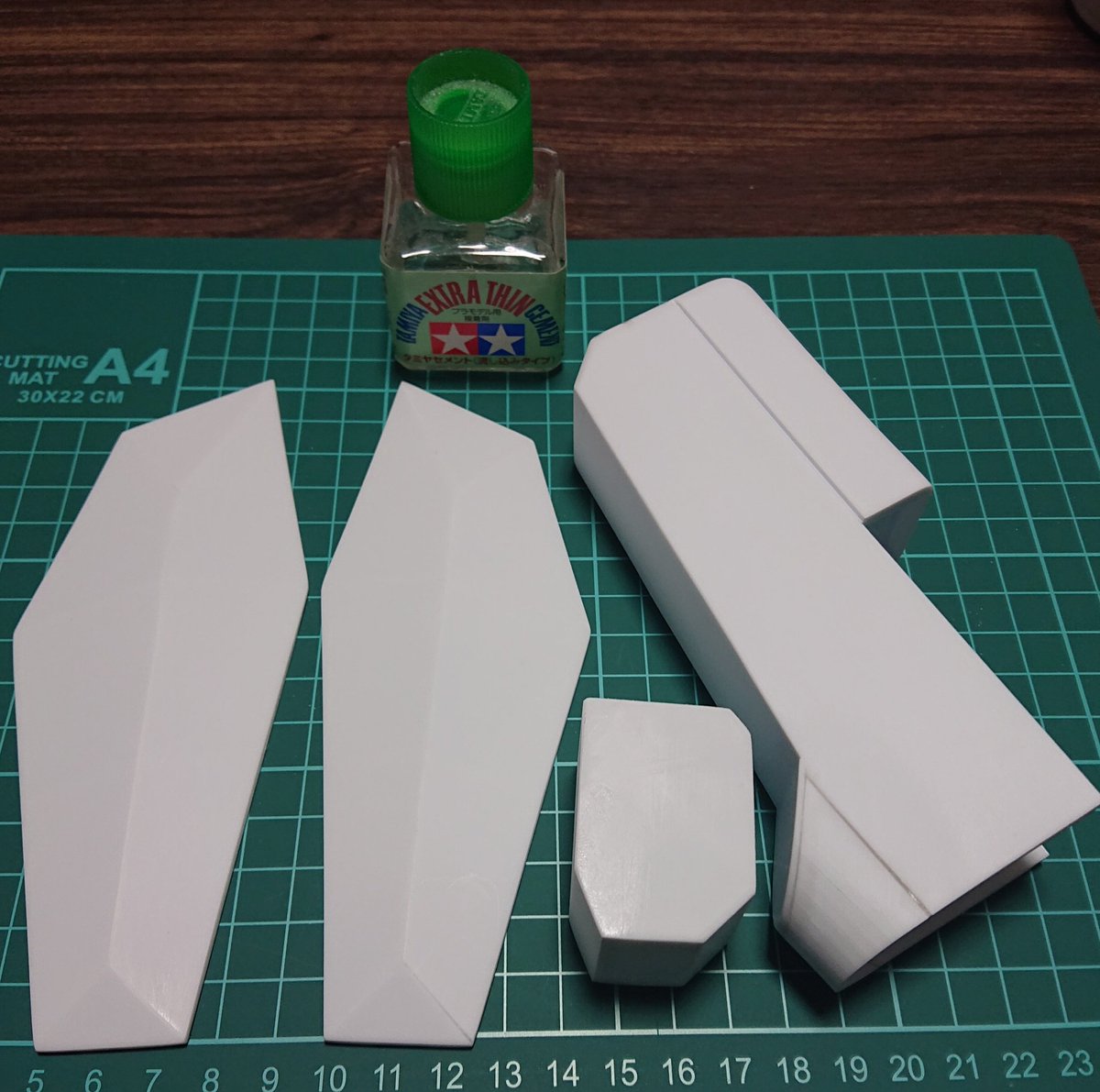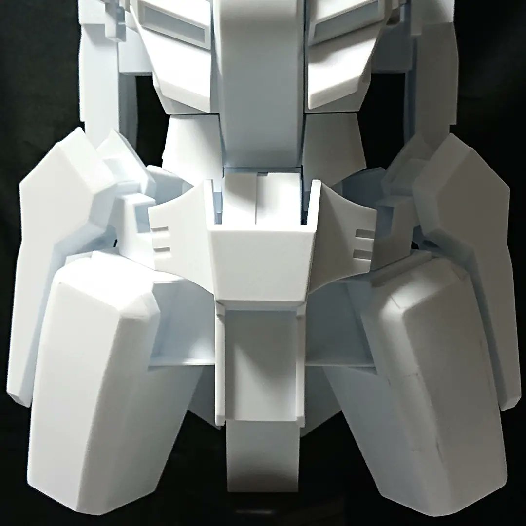 今日は大腿部のスキマ埋めをしつつ、股関節にかかる負荷対策。 (グレーに見えるところは瞬着の目地剤) 下手すると、股関節と大腿部の接続部には3kg以上の負荷がかかる可能性もあるのでガッツリ補強。 #ゼータヘッド #ゼータプラスA2型