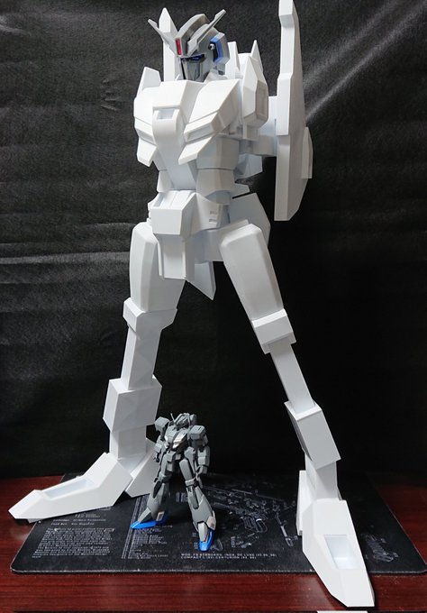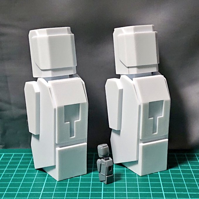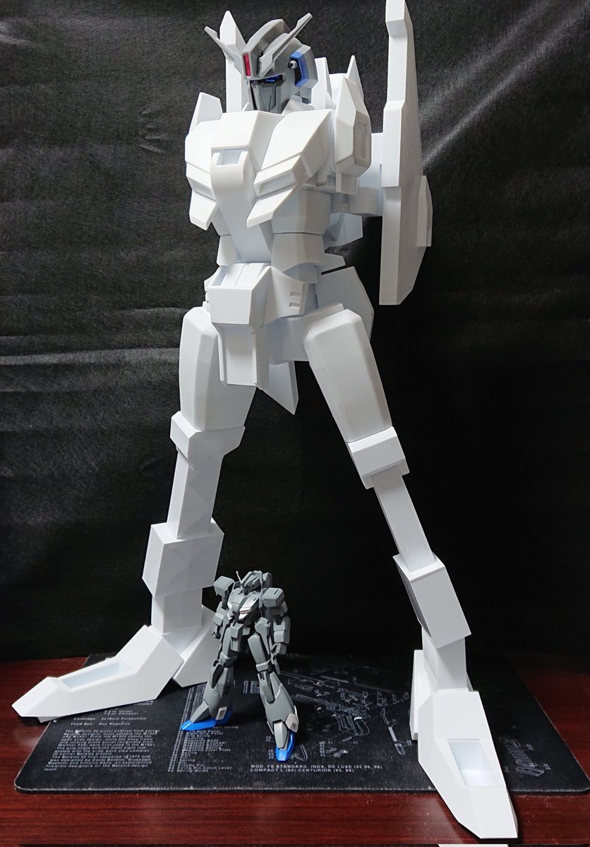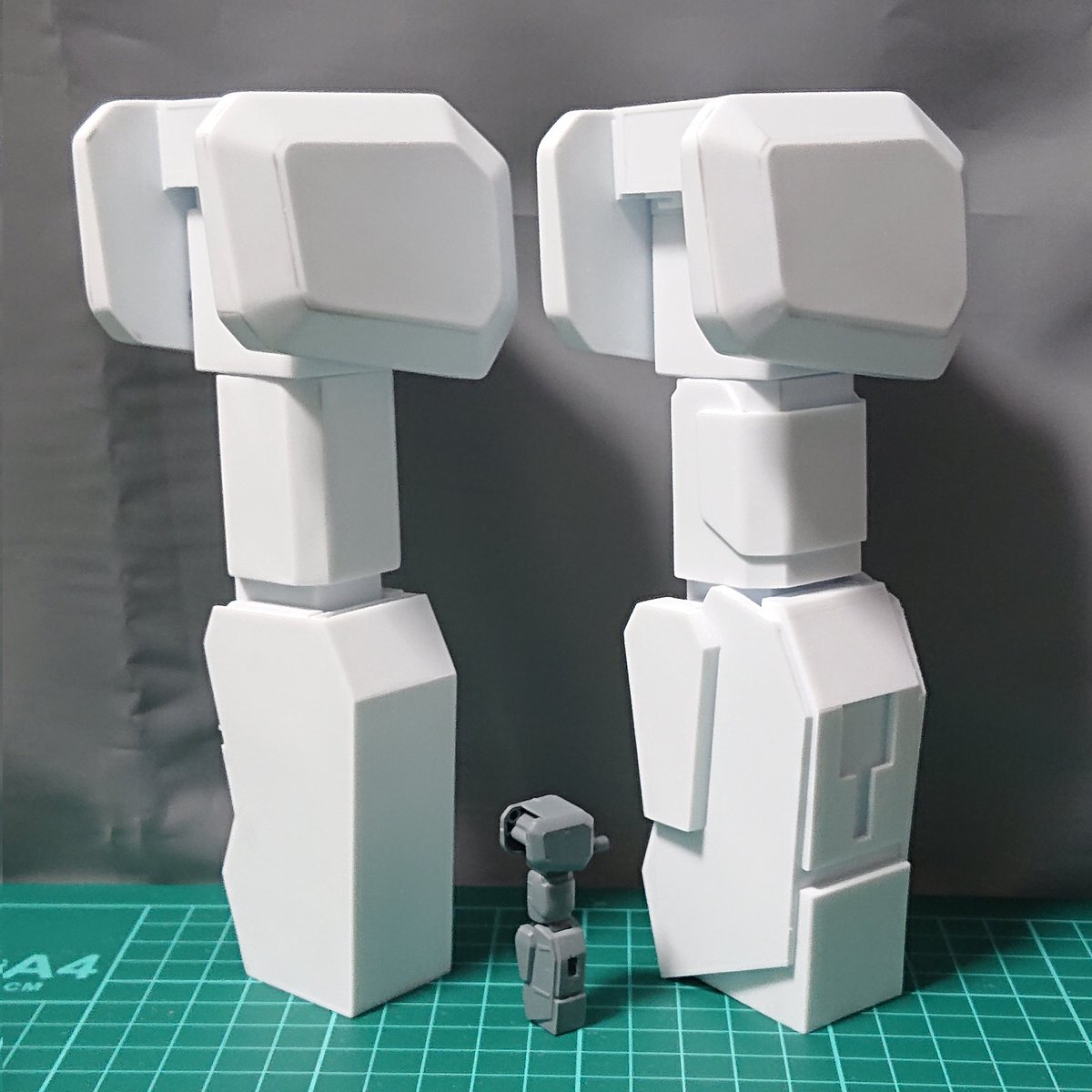 脚部のフレームが出来上がったので、下半身を仮設して、上半身を載せてみました。 全高約570mm、約20mの1/35なので設計どおり。 まだ脚部は両面テープ止めなので不安定ですね。若干、前のめり気味なのでバランス調整が必要。 #35ゼータプラス #ゼータプラスA2型 #ゼータヘッド