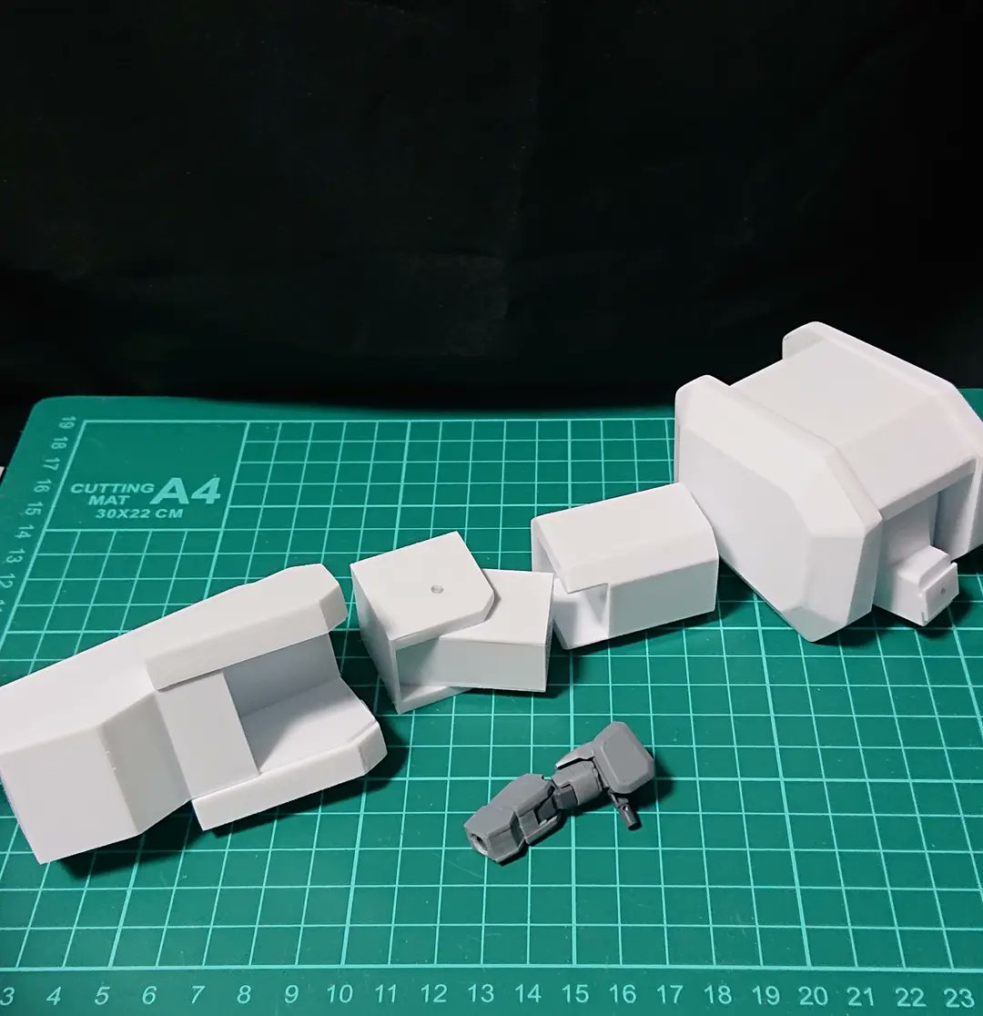 腰部ビームキャノンをもう片方製作して、ここ2週間くらいで作っていた腕部パーツと合わせて仮付け。 もう重さが2kgくらいありそう、かなり重くなってきた。 #ゼータプラスA2型 #ゼータヘッド #35ゼータプラス