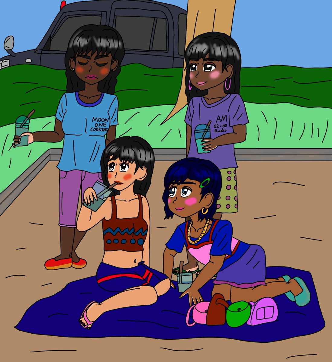 本日のイラストは、「みんなで楽しく」です。 ある日の午後、コーヒーショップで買った飲み物を持って公園へ訪れた美祈たち。 明美がソイラテについて語っています。 #イラスト #イラスト好きな人と繋がりたい #オリジナルキャラクター #コーヒー #ソイラテ #豆乳の日