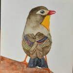 2枚目はソウシチョウ。 外来種として日本にもいるんですね。 頭から背中のグラデーションがきれいに描けました。 #ガモウスタジオ #水彩 #水彩画 #ソウシチョウ #watercolor #redbilledleiothrix