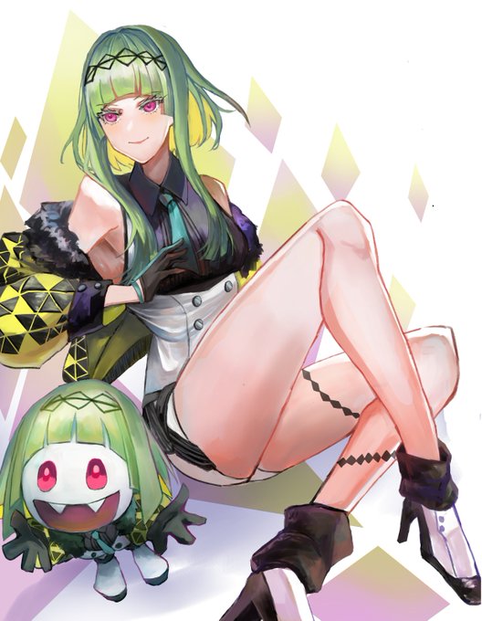 ヒトミちゃんの就活の邪魔…もとい応援するネミッサ。 #ソウルハッカーズ #ネミッサ #たんこの絵 #イラスト #illustration #アトラス #メガテン #megaten #ソウルハッカーズ2発売決定 !! #もといって打とうとしてモコイって打ってたよ