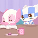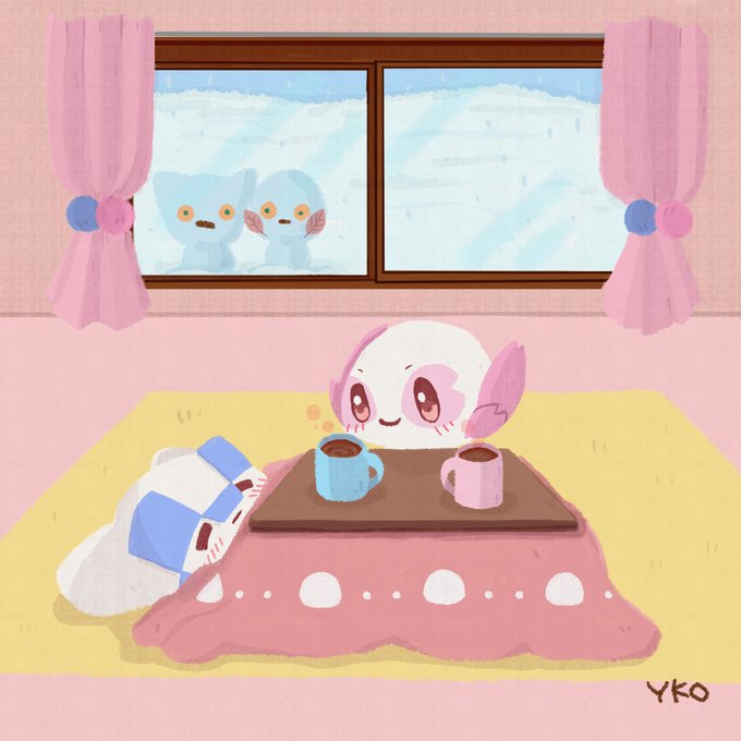 『とてもさむいひ』 💙そとはね、すんごーーーくさむいの 🌸あったかいココアいっしょにのもうね 💙うん #ミライトワ #ソメイティ #ミライトワきんようび #イラスト #illustration