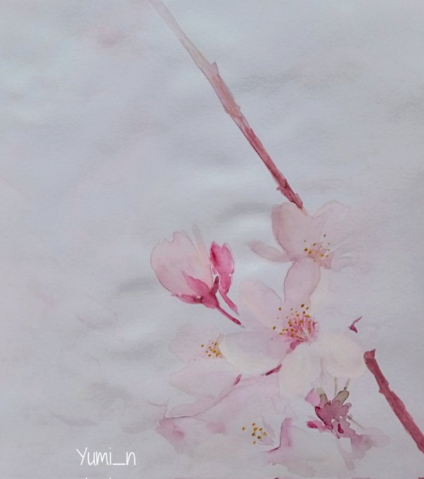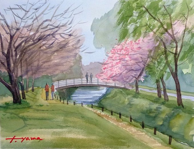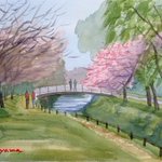 #水彩画 #透明水彩 #風景画 #スケッチ #Watercolor #Landscapepainting #sketch #Watercolorpainting #大和市 #泉の森 早咲きの #桜 が満開でした。左側の樹木は #ソメイヨシノ ですが、まだまだです。
