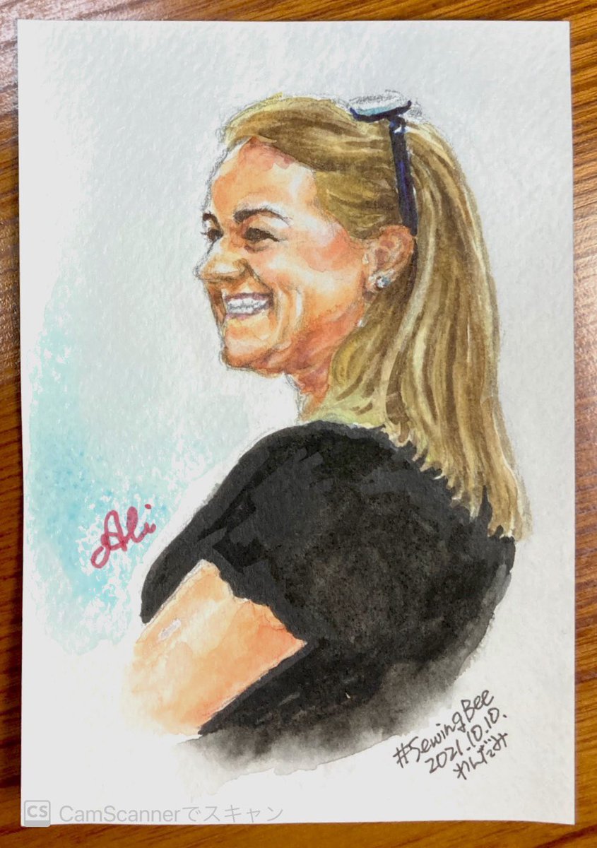 すでに描いてらっしゃる方がおられるかもしれませんが(そして先に描かないといけないものがあるのですが)我慢できずに描きましたすみません 絶対似合うと思ったんだもん #ソーイング・ビー5 #ソーイングビー