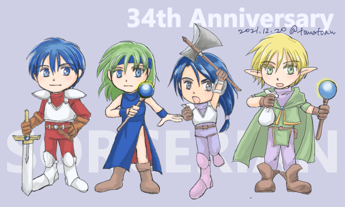 ソーサリアン34周年おめでとうございます! 自パーティ描きました!! F社公式アニバーサリー絵をハブられたので、自家発電!あっさり塗ったはずなのに、制作時間かかりすぎた😭 #ソーサリアン #ソーサリアン34周年