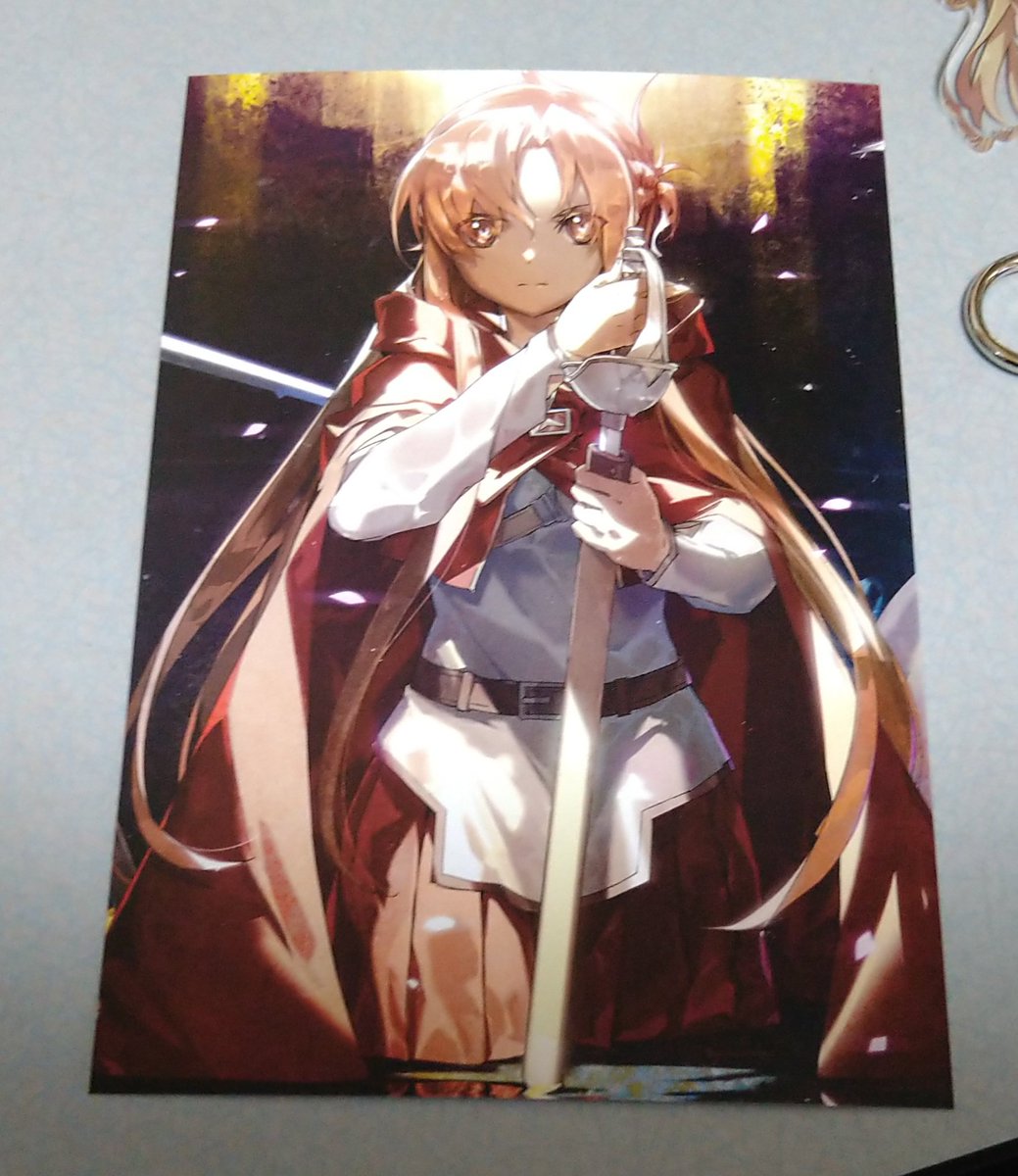 #ソードアート・オンラインプログレッシブ 星なき夜のアリア 観ーター。アスナ視点でストーリーの最初から描いてるのでSAO未体験の人でも安心。あとミトが山本崇一朗キャラに見えてしかたなかったわ。ミニ色紙モロタ。