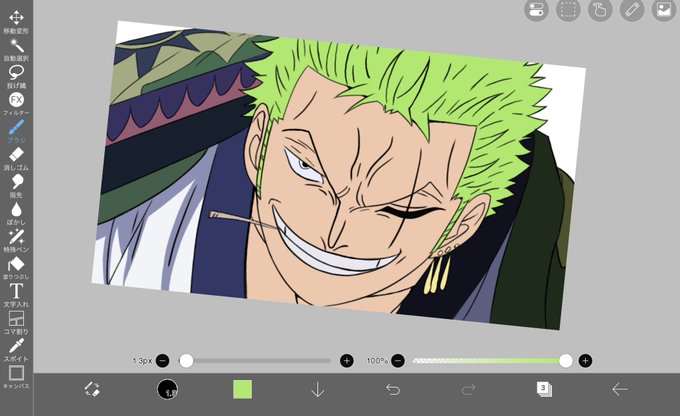 描きかけのゾロのこと忘れてて今ベースの色だけは終わらしたw あとは影とか色々調整したら完成だぜ(๑•̀ㅂ•́)و✧ #ワンピース #イラスト #ゾロ #絵かきさんと繋がりたい #いいねした人全員フォローする