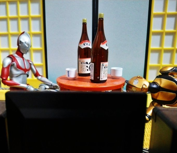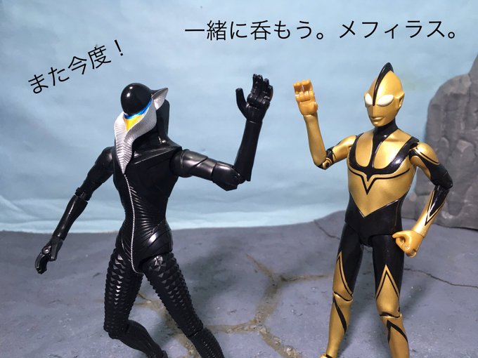 #夜のフィギュア撮影会 お題『フリー』 どうしてもゾーフィとは呑みたくないメフィラス!?😆 #シン・ウルトラマン #シンウルトラマン #ウルトラアクションフィギュア #ウルトラマン #メフィラス #ゾーフィ #オモ写
