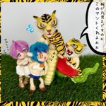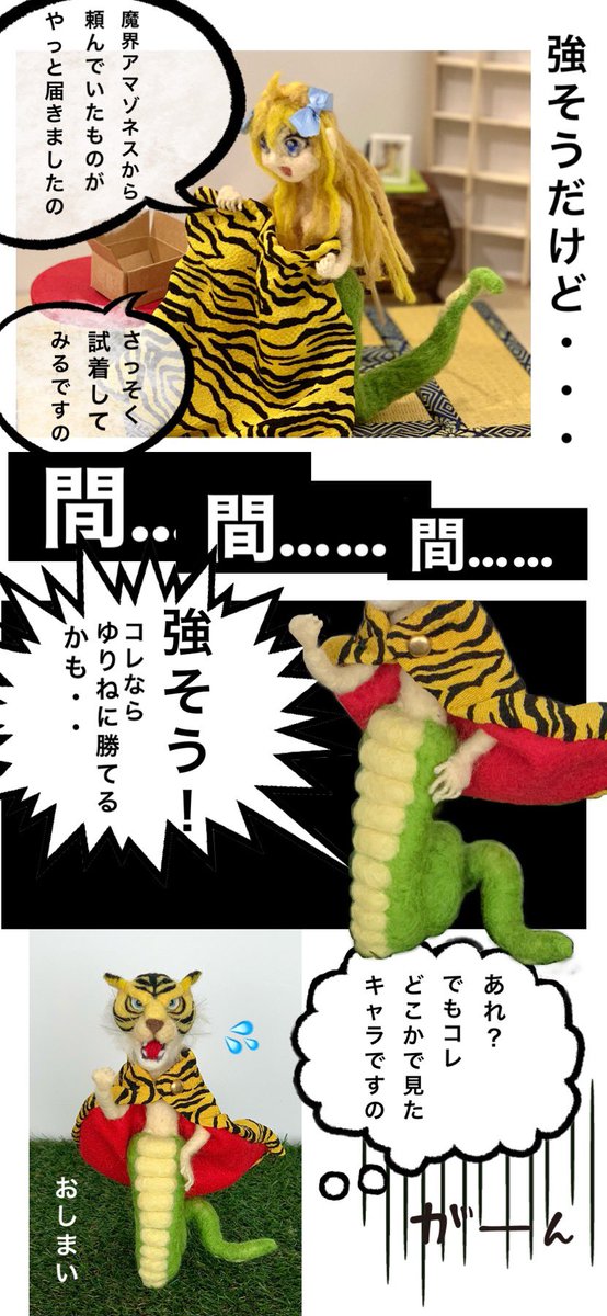 闇討ちどころか…😅 ヒーローマスクで 正体隠してますのっ‼︎ #邪神ちゃんドロップキック #逆さチョコの予告 #タイガーマスク #獣神サンダーライガー #グレートゼブラ #プロレスの日 #羊毛フェルトフィギュア