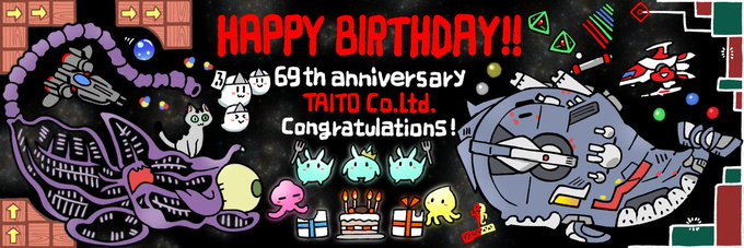 本日8月24日は #タイトー 様の創立記念日!! 69歳おめでとうございます!!🎁🎂🐳 今年は私の人生を華やかに変えてくれた #ダライアスバースト と、#イーグレットツーミニ で特に楽しませてもらっているメンバーでお祝いです!これからも応援しております!!✨👾#タイトー生誕祭