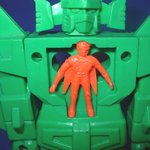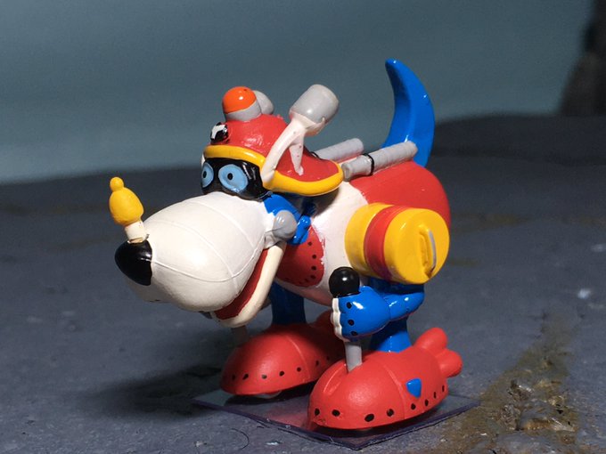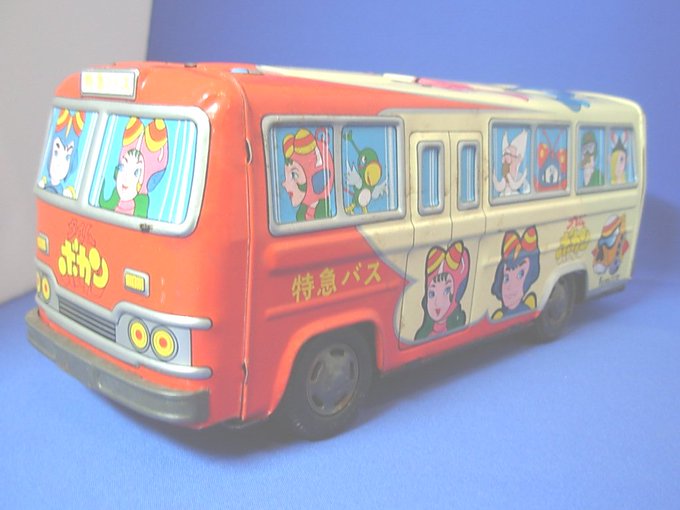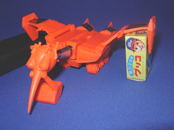 #夜のフィギュア撮影会 7/18 お題「変化」 塩ビ人形の「オタスケサンデー号」です。 戦車形態への変形の際、タイヤからキャタピラへの換装も出来る玩具はこれしか発売されませんでした。 #オタスケマン #タイムボカン