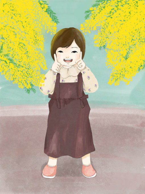 似顔絵交換したフォロワーさんのお子さんです☺️(再掲載) #タイムラインにミモザを飾りましょう #ミモザの日 #国際女性デー #イラスト #InternationalWomensDay #Mimosa #illustration