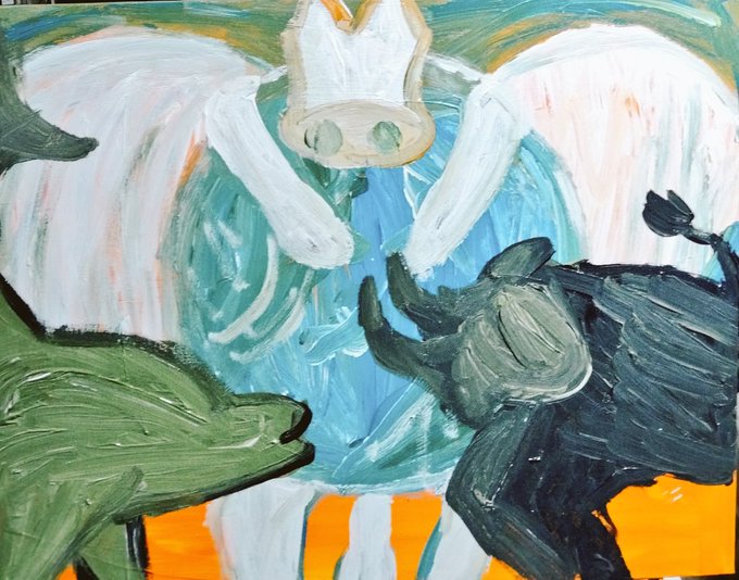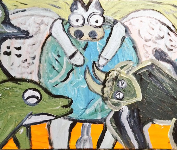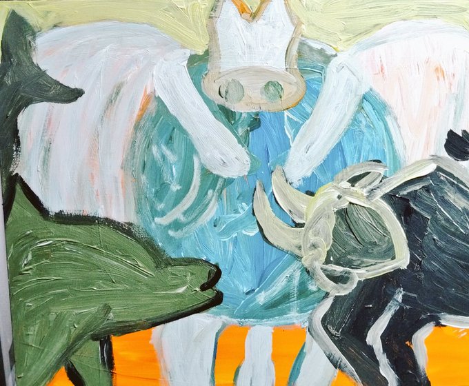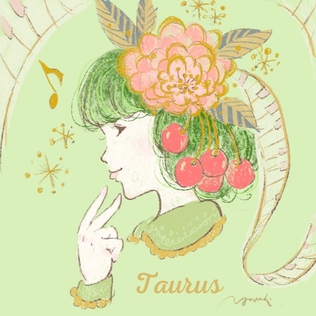 太陽が牡牛座入りしたので 牡牛座の落書き🐂 楽しいことてんこ盛りな 絵になったー🎶 わくわくハッピーなひと月に なりますよう🌸 牡牛座の皆さま、お誕生日おめでとうございますー🎉 #牡牛座 #タウロス #星座 #まつしたゆうり落書き #イラスト #デジタルでも金色に見える特技(笑)