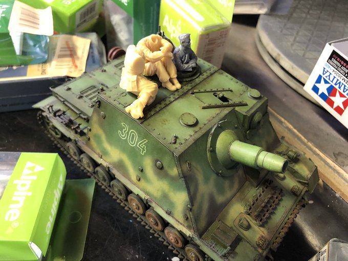 #中四国AFV の会に今年提出した作品。単品金賞をいただいた。うれしい。フィギュアは #タカハシモデリング、#タミヤ、#アルパイン。塗装は #シタデルコントラスト を多用。戦車はタミヤのブルムベアを素組。いいキットです。#ガンプラジオ