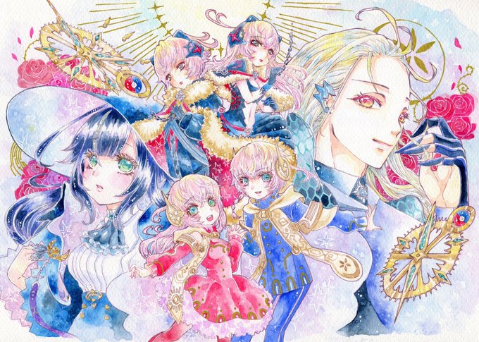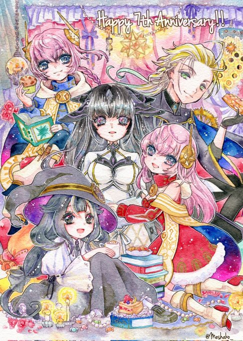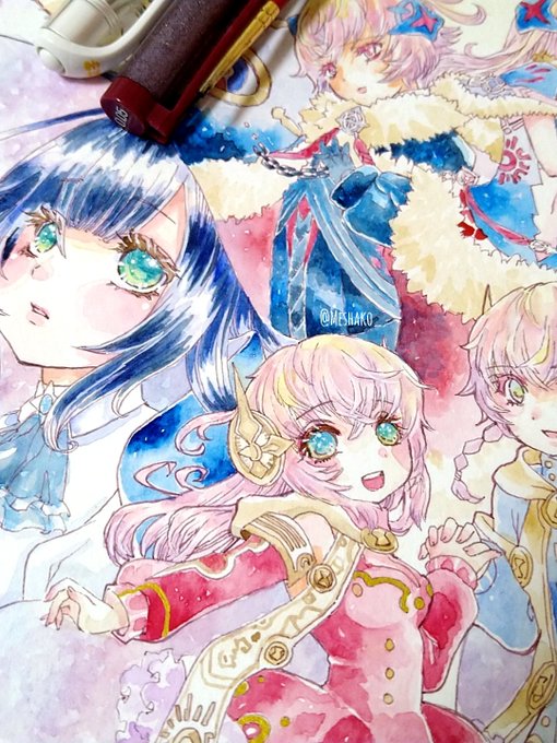 #タガタメファンアートコンテスト ついに6周年🎂おめでとうございます🎉💐👏 こんな素敵なゲームを制作し運営し続けてくれてありがとうございます💓今年も神革から大好きな子たちを描きました🎁ツリーに過去絵も貼るので、見ていただけたら嬉しいです🙌💕 #タガタメ #タガタメファンアート #透明水彩