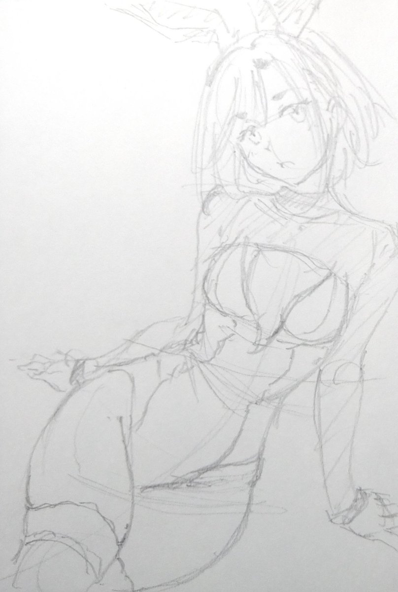 午後のデジタル画練。 先日から進めているバニーサリィ下絵の2回目を下敷きに、超速線画練してざっくり着彩。 いったん色まで付けて様子を見て、使える部分はそのままに、何か欲しいなという所は改良する。 #タケcアナデジ画探究