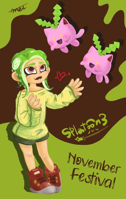 スプラトゥーン3 11月のポケモンコラボフェスは草タイプ推し🌱 #タコちゃん #art #cute #秋の創作クラスタフォロー祭り #イラスト #スプラ3 #illustration #みんなで楽しむTwitter展覧会 #スプラトゥーン3 #スプラトゥーンフェス