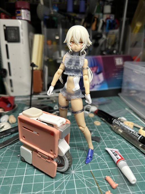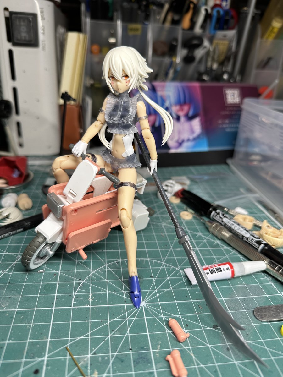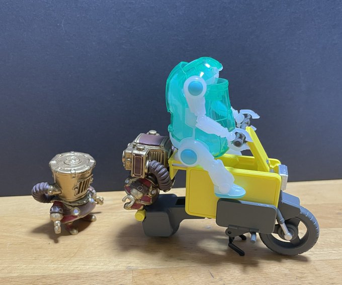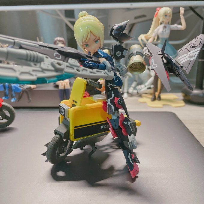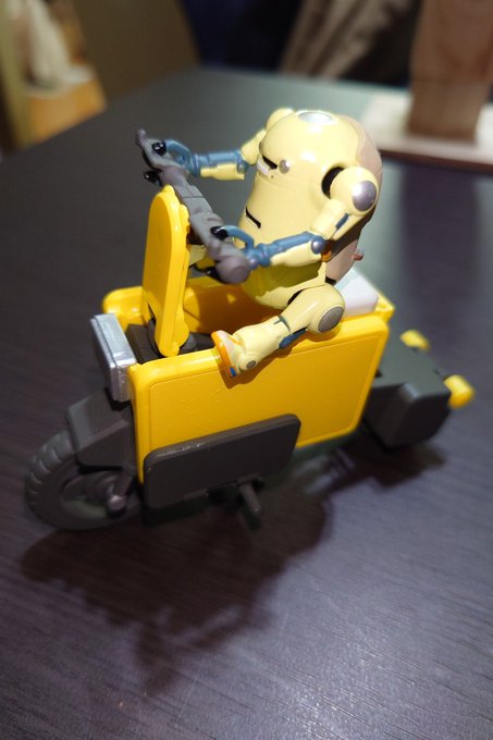 #TATAMELBIKE #タタメルバイク #蝸之殻 #snailshell #メガミデバイス 4台完成! イエローは適度なオモチャ感があって可愛い。 ミリタリーは色々付け足してゴテゴテさせたい。 ライトウッドはオシャレ。美プラと合いそう。 スポーツレッドはスポーツに振り切ったカスタムにするとより映えそう。