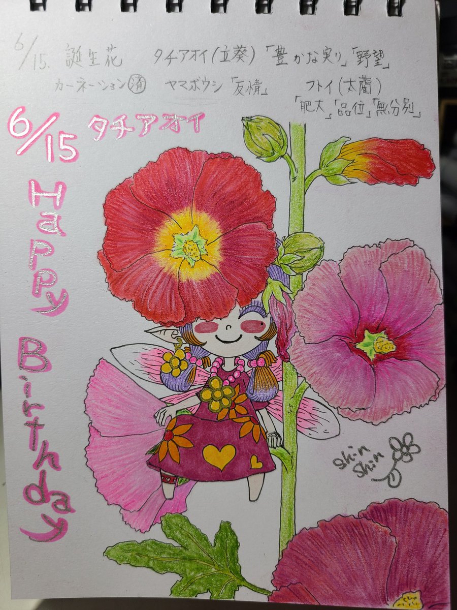 6月15日生まれの皆さん誕生日おめでとうございます😁😁✨ #毎日誰かの誕生日 #誕生日 #花の妖精シリーズ #毎日投稿 #イラスト #誕生日おめでとう #HappyBirthday #タチアオイ #花のある暮らし #花 #illustration #handdrawing #fyp #オリジナルキャラクター