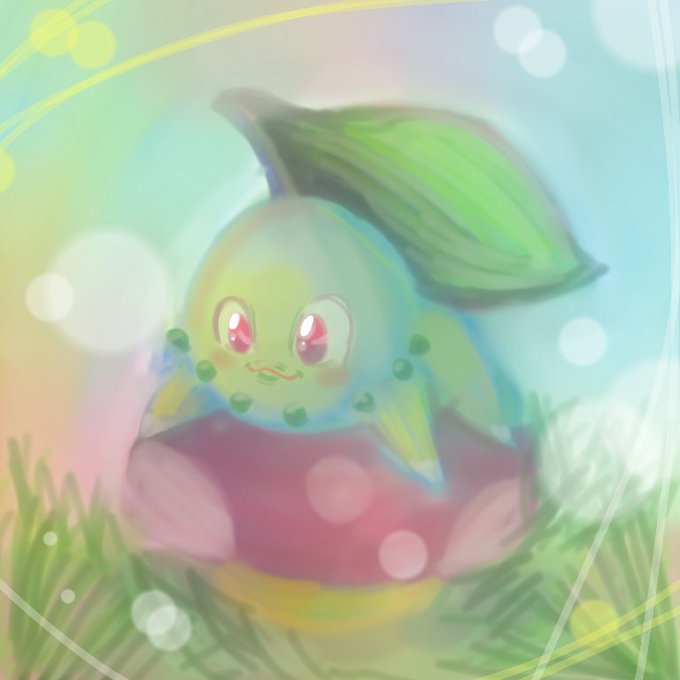 🍀描いてみました🍀 ポケモンのチコリータを 描いてみました #ポケモン #チコリータ #イラスト #二次創作 #タッチペン #アイビスペイント #イラスト好きな人と繋がりたい #絵描きさんと繋がりたい #絵柄が好みって人にフォローされたい #一日一絵