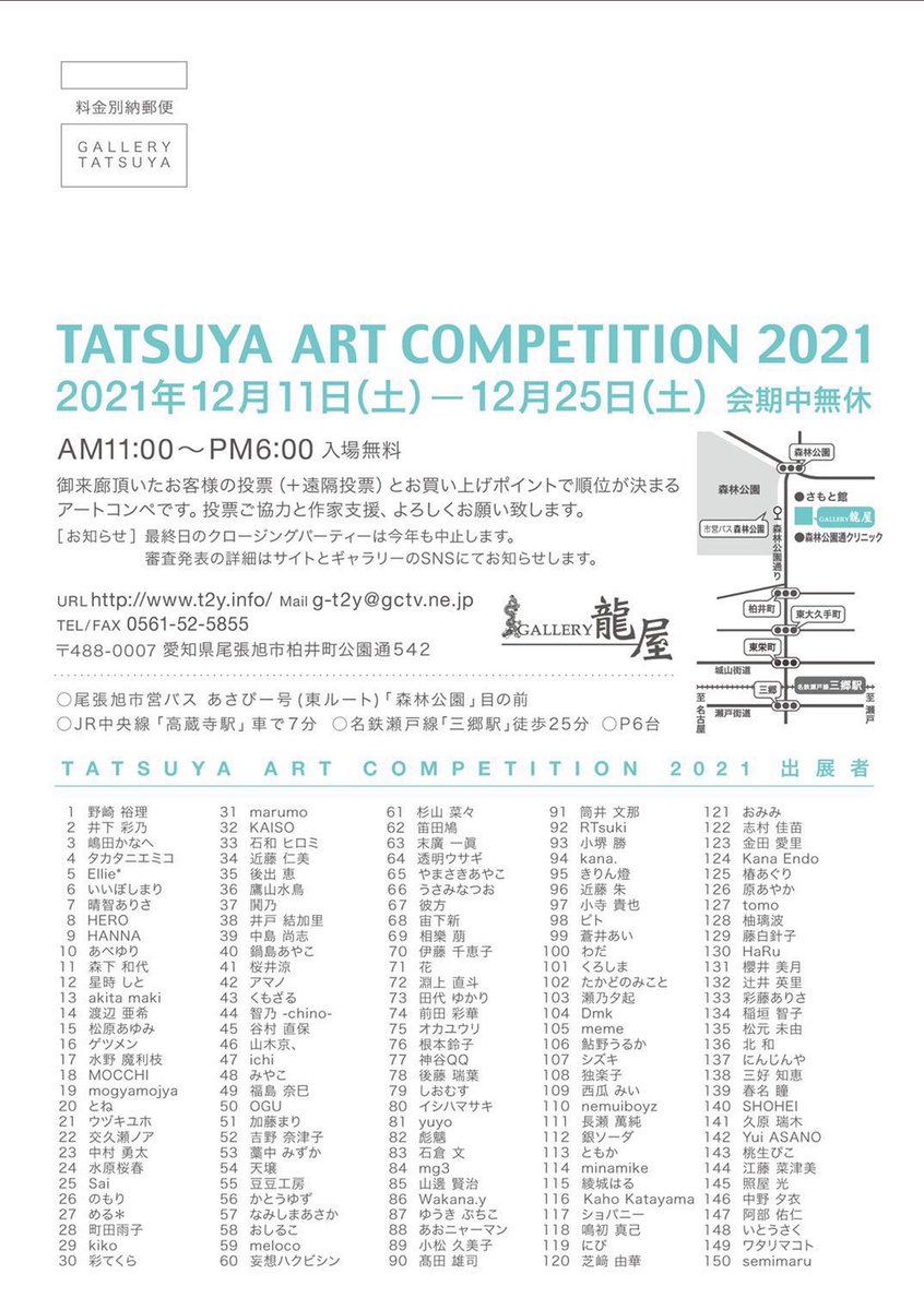 【本日から】 TATSUYA ART COMPETITION 2021 12/11〜25 11:00-18:00 GALLERY龍屋/愛知 t2y.info/aichi No.96 で出展 #タツコン2021 会場と遠隔のお客様投票や作品購入で順位が決まるコンペです。何を描いたのかを綴った読物も下記で公開中です。併せてどうぞ😊 kondo-aka.fanbox.cc/posts/3111315?…