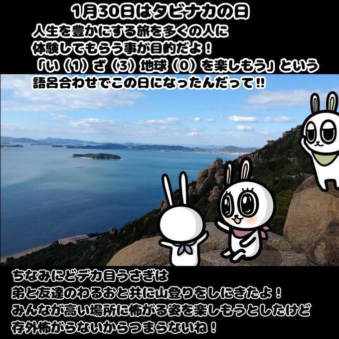記念日イラスト75枚目 本日1月30日は #タビナカの日 今の状況が落ち着いたら聖地巡礼に行きたいです! 1人旅は苦手なので妹にも来てもらいます( *¯ ꒳¯*)どやぁ #bintrollFA