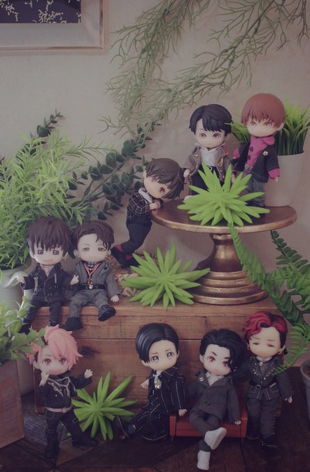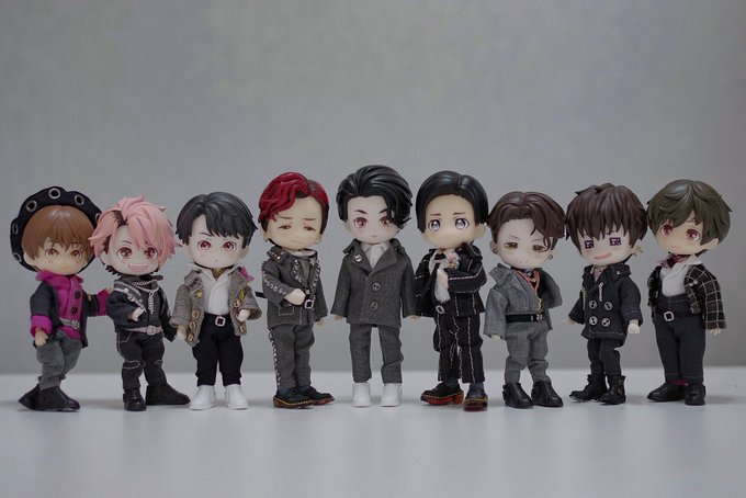 連日沢山の反応ありがとうございます🙏 アー写っぽい並びも撮ってみた〜 作ってる時点で身長差には拘ったけど、髪型とか靴のデザインでどうにもならないこともある #綴れつないでいこう #タペストリー #スノねん