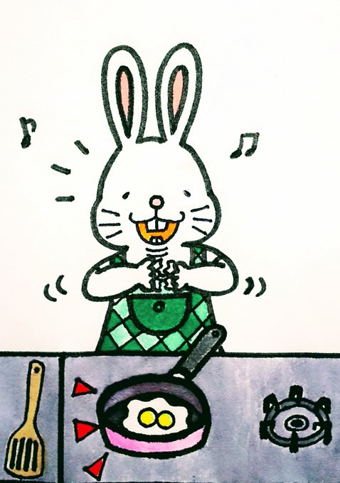 こんにちは! 前歯うさぎさんです(о^ω^о) 【目玉焼きの黄身が双子 ~レアだ!ラッキー~】 #イラスト #前歯うさぎ #イラスト好きさんとつながりたい #絵描きさんと繋がりたい #rabbit #illustration #夏の創作クラスタフォロー祭り #目玉焼き #卵 #たまご #タマゴ #egg