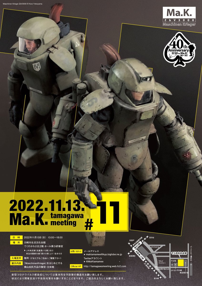 タマミー、「Ma.K.関東展示会」ブースから初参加させていただきます。 元関東展示会スタッフ、横山センセのパダワンながら10年程のブランクがあり、近年のMa.K.シーンを分かってませんが楽しみです。 TV用に制作した懐かしの作品をレストアして持ち込みます。 #タマミー #マシーネンクリーガー