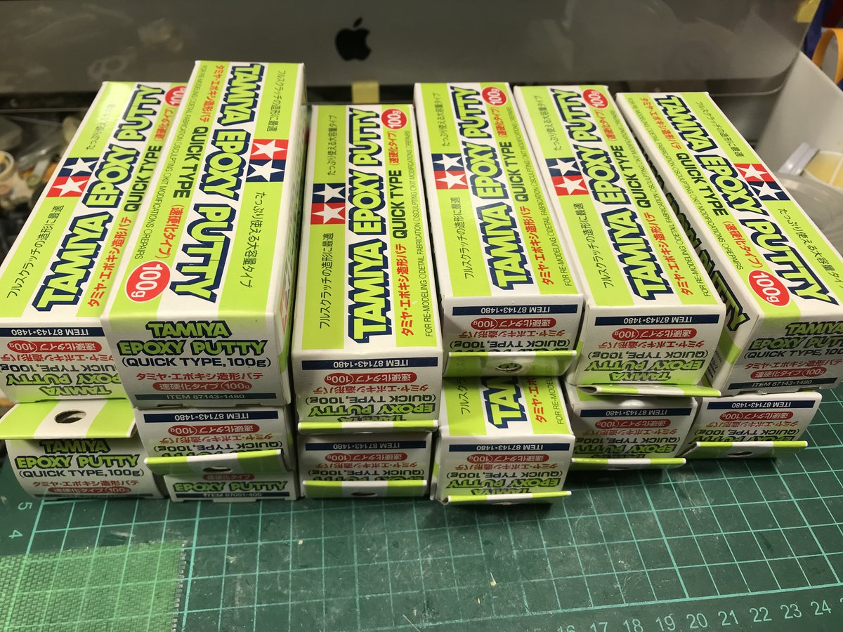 私、タミヤの速攻化エポパテが無ければ筆を折る…ならぬヘラを折るレベルで困るのでとにかくこれがなければ始まらない20数年間ずっと愛してやまないアイテムナンバーワンです。 (あとは4mmプラ棒を出してさえくれればいいんだけどなぁぁぁ…w) #タミヤでなければ始まらない