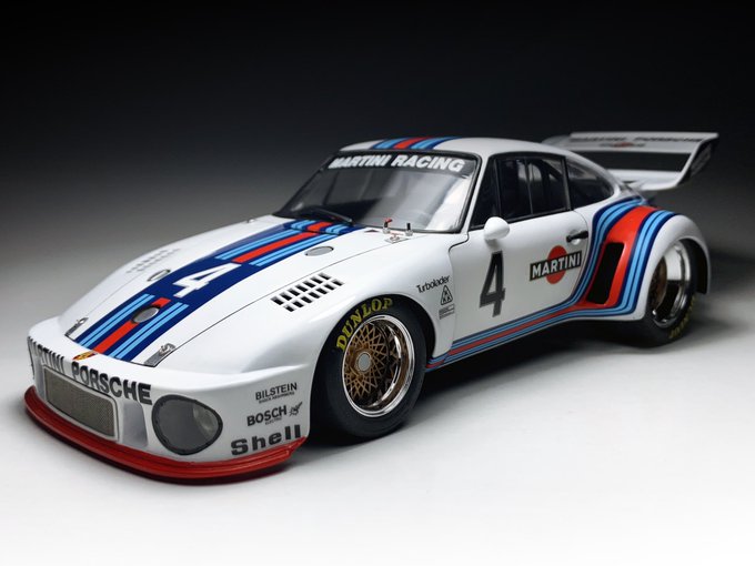 1/12 ポルシェ935 マルティーニ 田舎の模型屋の子供の手が届かない棚の上にあった。 ショーウィンドウの中に完成見本があったらかぶりつきで見てた。 大人になって手に入れてもなかなか手がつけられなかった。 あの箱絵じゃなければ、こうはならなかった。 ありがとう #タミヤでなければ始まらない