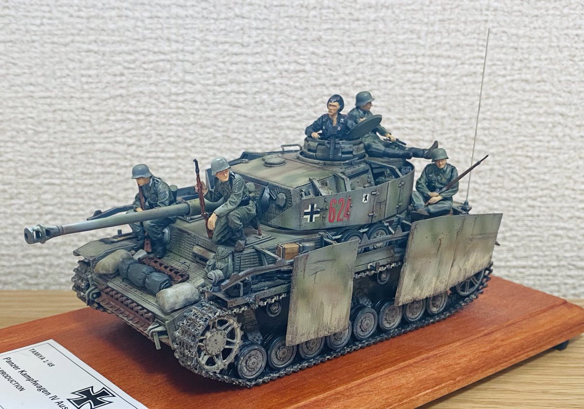 新版と悩んだけどやはり旧版のIV号戦車H型かなー。これは比較的最近作ったやつだけど、中高生の頃にこいつをなんとかならんもんかと頑張ったからワイの戦車模型は続いてると思うんだ。 #タミヤでなければ始まらない