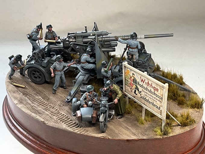 久々に作例掲載していただきましたよ! PAK35/36のヴィネットなんですけどね、初めて?使う、土嚢やレンガの工作が面白かったなぁ 思うに、情景セットって牛丼の紅ショウガ的存在なんだろうね… 定番ロングセラーたる所以だとも思うんですよ🤩 #タミヤでなければ始まらない #アーマーモデリング