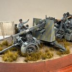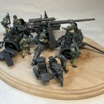 1972年MMシリーズNo.17として発売されたドイツ88mm砲。ヴィンテージと言ってもよい古いキットだけど、いま見ても惚れ惚れする名作キット! 付属する9体の人形もイキイキと演技しているので、オリジナルの雰囲気をできるだけ残しつつ陸軍から空軍高射砲兵に改造。 #タミヤでなければ始まらない