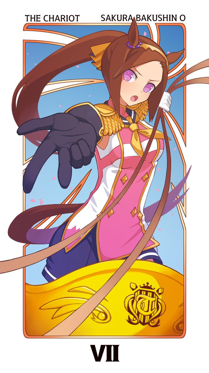 タロットシリーズ7枚目で猪突猛進! 7.戦車 サクラバクシンオー | ひふみつかさ #ウマ娘 #サクラバクシンオー #タロットカード #pixiv pixiv.net/artworks/96164…